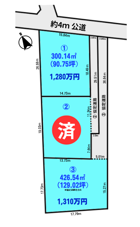 | 接道方向1 | 北 | 接道間口1 | 11.3m |